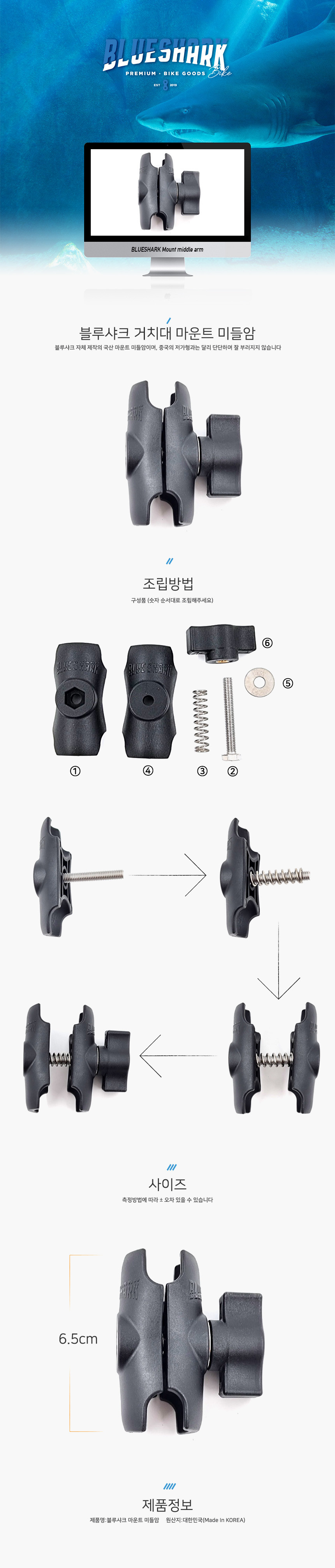 블루샤크 자체제작 오토바이 거치대 마운트 미들암 국산 > 배달용품